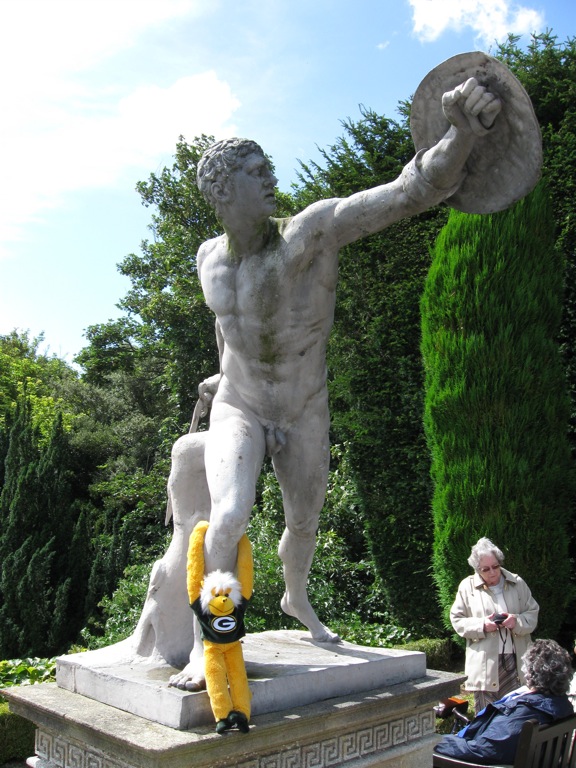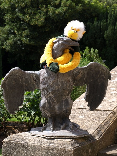 ![]() Jean soars on the eagle at the base of the staircase. (How happy he looks!) |