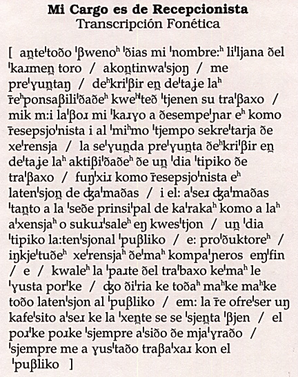 Mi cargo es de recepcionista