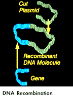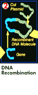 3. The cut ends of the plasmid and the desired piece of DNA stick together - recombine - to form a new loop that includes the inserted gene.