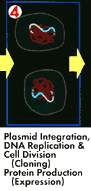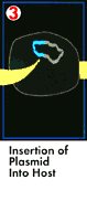 2. Restriction enzymes, which can break apart strands of DNA, are used for two purposes: to cut open the plasmid, and to cut out the desired gene (which has previously been identified) from the cell's DNA.