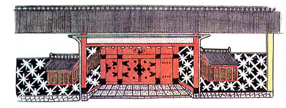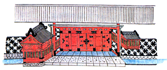 guard boxes on both sides reflect the daimyo's status. The gate