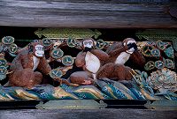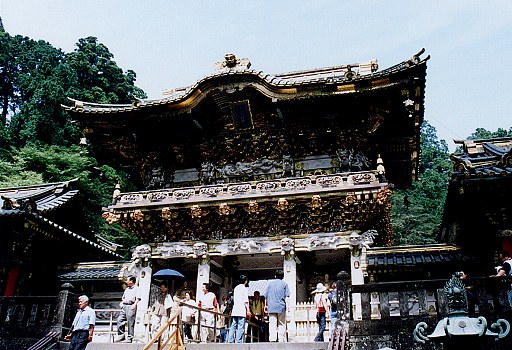 Nikkō Tōshōgu was built in 1617 as a shrine and mausoleum to deify Tokugawa Ieyasu (1543-1616), but it was rennovated and expanded 20 years later. It includes temple and shrine buildings, but the most famous element is the main gate to the shrine. It is known for is bright colors and intricate carvings. The visitor, according to one text on Japanese culture, "is apt to be puzzled and perhaps repelled by the elaborately and garish buildings," which "represent the antithesis of the aesthetic qualities that have inspired the finest works of Japanese art and architecture."